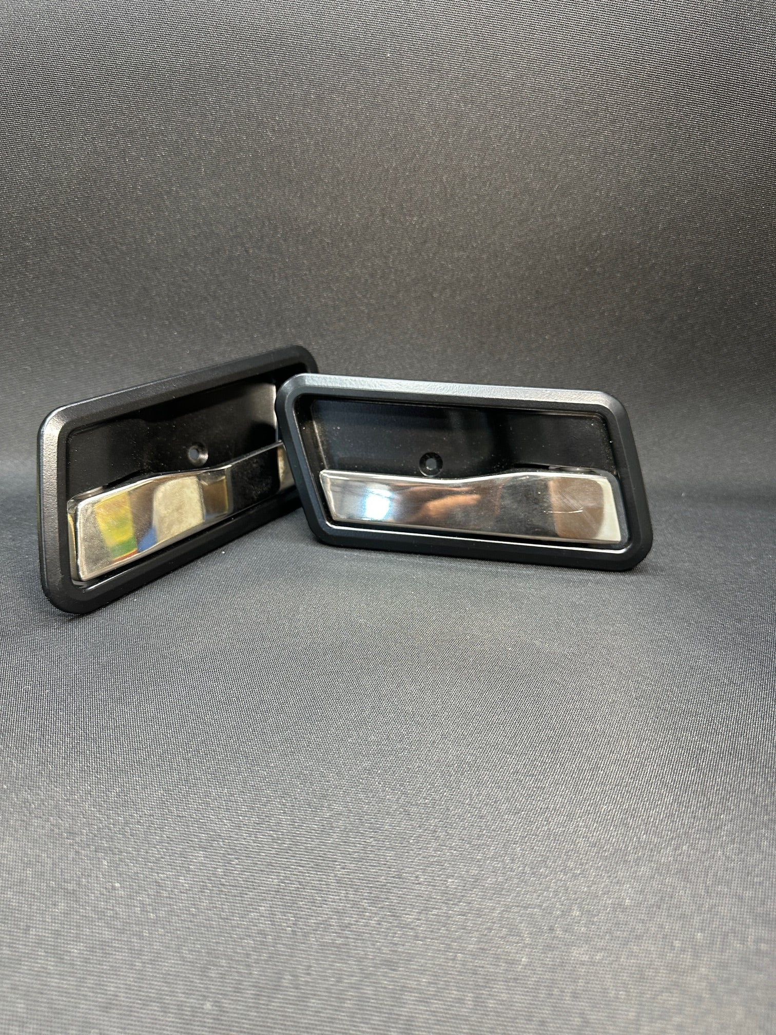 Door handle for your vehicle. Machined from 6061 Aluminum. These handle are a stout, well-engineered work of art, utilizing return spring and bump stop for a new car feel.